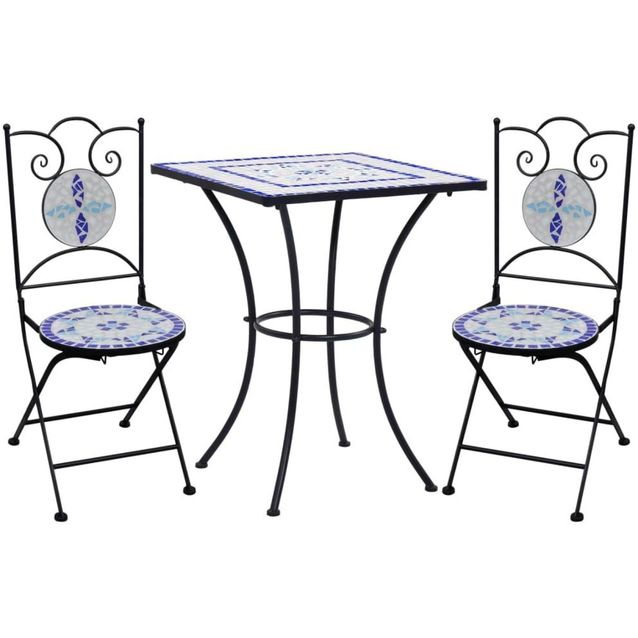 3-osainen mosaiikkibistrosarja, keraamiset laatat, sininen ja valkoinen