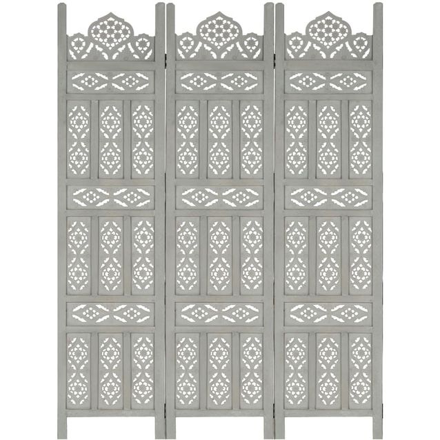 3-paneelinen tilanjakaja harmaa 120x165cm täysi mangopuu