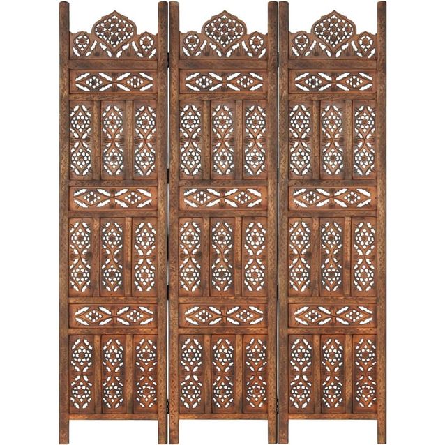 3-paneelinen tilanjakaja ruskea 120x165cm täysi mangopuu