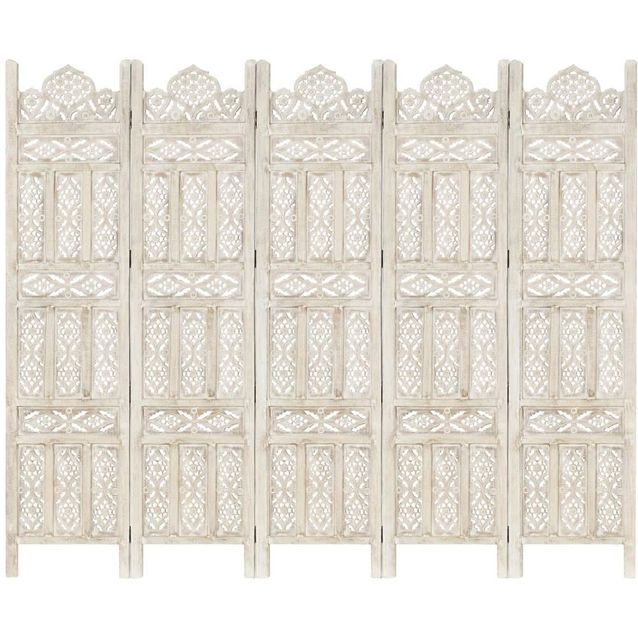 5-paneelinen tilanjakaja valkoinen 200x165cm täysi mangopuu