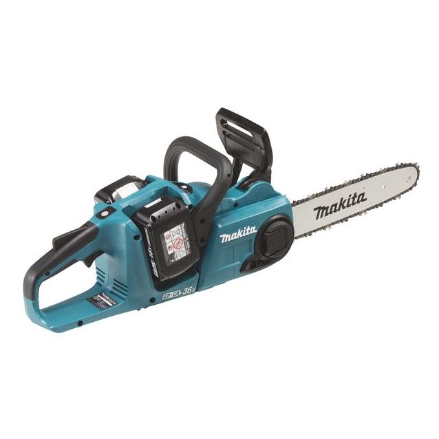 Saha kuuluu LXT-akkukoneperheeseen ja toimii kahdella sarjaan kytketyllä 18V LXT-akulla, joilla saadaan aikaan korkea 36V jännite. Akut asetetaan laitteeseen rinnakkain erillisiin akkutelakoihin. Toimitukseen sisältyy tarvittavat kaksi korkeakapasiteettista 5,0 Ah akkua sekä tuplalaturi, jolla lataat molemmat akut yhtä aikaa.