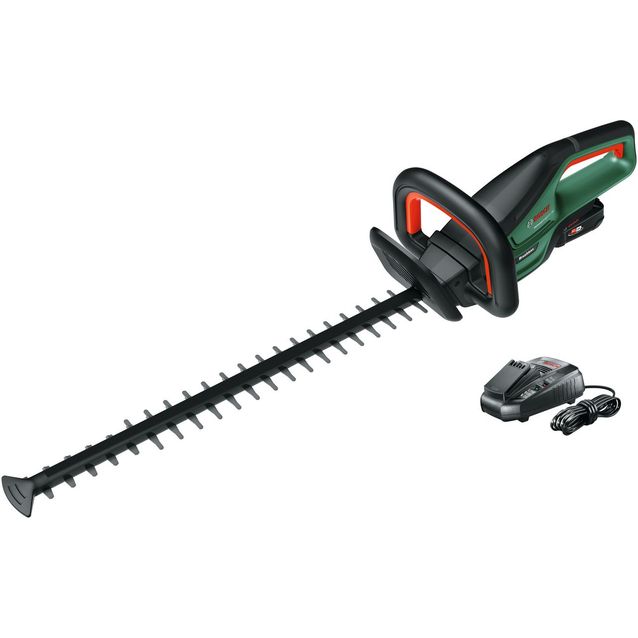 Boschin UniversalHedgecut 18-50 2,5Ah Al 1830 on korkean suorituskyvyn omaava kevyt akkupensasleikkuri, joka toimii 18 V akulla. Pensasleikkuri soveltuu keskisuurten ja suurten pensaiden työstöön ja se on varustettu tehokkaalla ja pitkäikäisellä harjattomalla moottorilla. Pensasleikkurissa on Quick-Cut-toiminto sekä lukkiutumisenestojärjestelmä, jotka helpottavat ja nopeuttavat työskentelyä. Swiss-Precision terät takaavat siistin leikkuujäljen. Pensasleikkurissa on kätevä akun lataustilan ilmaisin. Kevyt leikkuri painaa vain 2,5 kg ja sen ergonominen muotoilu ja paranneltu etukahva takaavat miellyttävän työskentelyn. Laipan pituus leikkurissa on 50 cm ja teräväli 20 mm. Pensasleikkurin toimitus sisältää 1x2,5 Ah akun ja laturin.