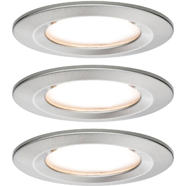 Paulmannin Coin Slim -alasvalosetti sisältää kolme harjatun teräksen väristä alasvaloa. Alasvalot ovat todella ohuita, joten ne voidaan asentaa myös pieneen välitilaan. Valaisimen asennuskorkeus on ainoastaan 30 mm! Himmennettävissä RC-seinähimmentimellä.