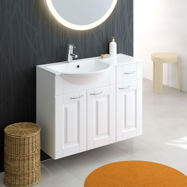 Allas ja allaskaappi Otsoson Susa 900 900x320/390 valkoinen vasen kehysovi sivukaappi yhdellä laatikolla