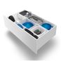 Temalin allaskaappi Temal Ilona 3 on suunniteltu integroimaan pyykinpesukone kauniisti osaksi kylpyhuoneen sisustusta. 450 mm syvä allaskaappikokonaisuus sisältää allaskaapin pehmeästi sulkeutuvilla laatikoilla, valkoisen alta liimattavan Onni-altaan, irtosivun säätötassuilla sekä Hi-Macs -komposiittitason värissä S028 Alpine White. Settiin kuuluu myös kaksi tukijalkaa harjatussa teräksen värissä. Tasossa on valmis aukotus irrallisena toimitettavalle altaalle ja hanalle Ø 3,5 cm, hanareikä sijaitsee keskellä altaan takana. Vetimet eivät sisälly toimitukseen, mutta voit halutessasi valita sellaiset mukaan tuotekortin valikosta.