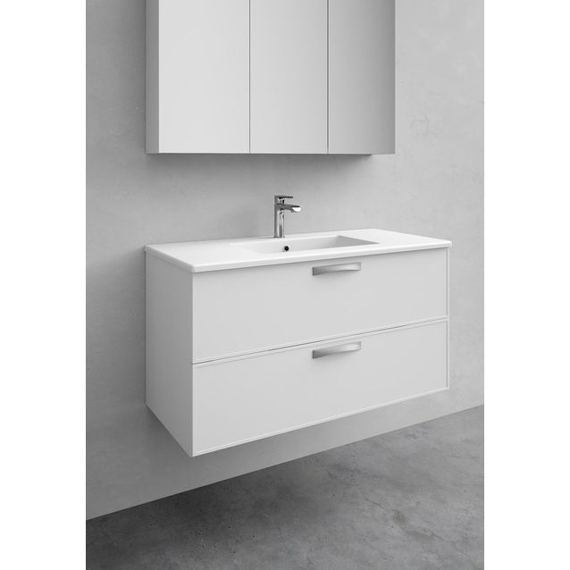 Noro Vogue on klassisesti muotoiltu allaskaluste, jossa on ripaus art decoa. Laatikoiden etuosan ohut ja tyylikäs kehys antaa tyyliä kylpyhuoneellesi. Valittavanasi on kaksi erilaista upotettua pesuallasta, joista molemmissa on tilavat altaat ja runsaasti laskutilaa. Vaihtoehtoisesti voit täydentää kalusteen tammitasolla tai sementtikuvioidulla MDF-tasolla sekä malja-altaalla, jonka pehmeät muodot luovat art deco -ilmettä. Täydennä tyyli mieleisilläsi vetimillä.