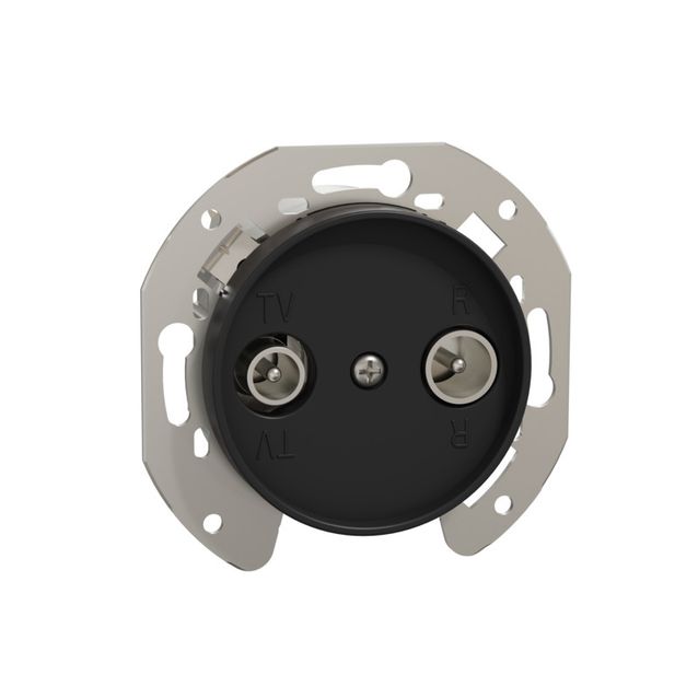 Mustassa Schneider Electric Renova R/TV S1T antennirasiassa on retrohenkinen ulkoasu nykyaikaisilla toiminnallisuuksilla.