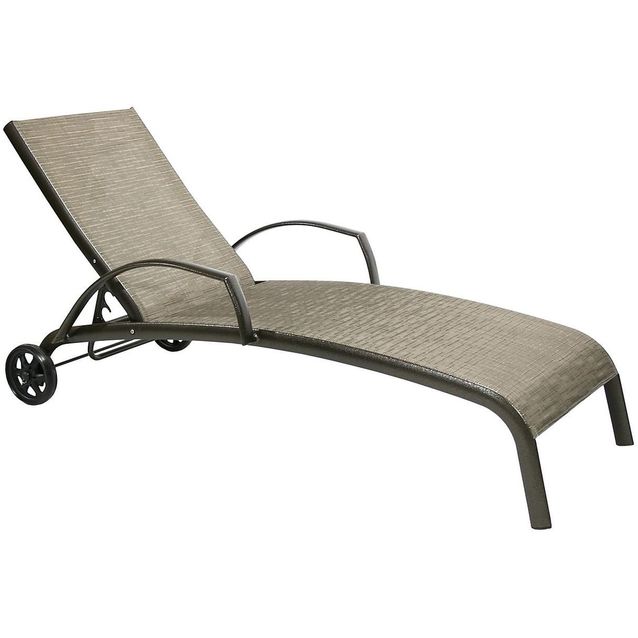 Säänkestävä aurinkotuoli Home4you Montreal-2 ruskealla alumiinirungolla ja beigellä Textiline-kankaalla. Tuolin selkänojassa on neljä asentoa. Tuotteella on HoReCa-suositus eli se sopii kotipihan lisäksi esimerkiksi ravintola tai hotellikäyttöön. Painoraja 100 kg.