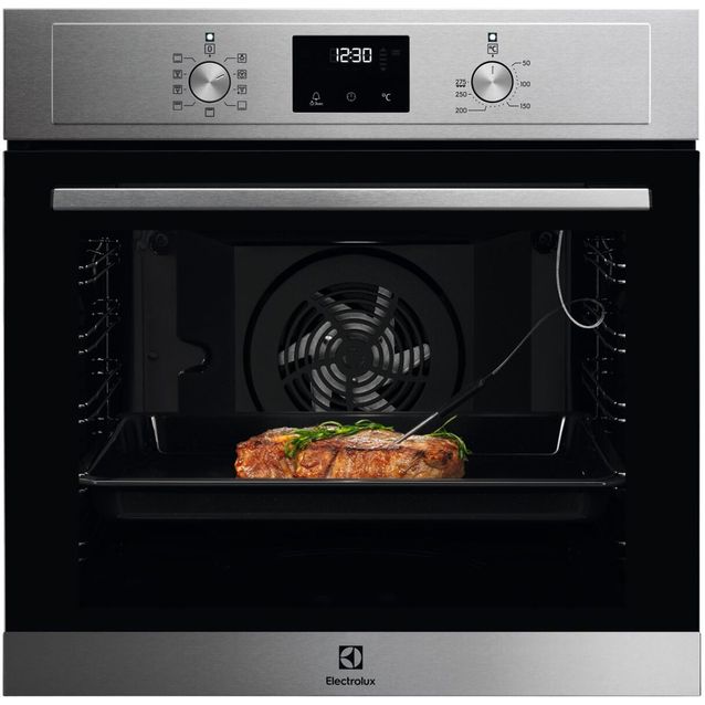 Paistolämpömittari takaa aina täydelliset tulokset. Se mahdollistaa kypsennysprosessin tarkkailemisen mittaamalla ruoan sisälämpötilaa. Lisäksi se ilmoittaa, kun oikea lämpötila on saavutettu ja sammuttaa uunin.Tarkat asetukset LED-ajastinnäytön avulla