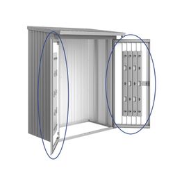 Tyylikäs Biohort Woodstock 150 -halkokatos. Halkokatoksen korkeus on 199 cm, leveys 157 cm ja syvyys 102 cm. Puukatos on saatavilla hopeana, tummanharmaana sekä kvartsinharmaana. Kestävä katos on valmistettu kestävistä materiaaleista, ja sen kasaaminen on helppoa. Halkokatosta voi hyödyntää myös esimerkiksi puutarhakalusteiden tai -tarvikkeiden säilytykseen. Katokseen on saatavilla lisätarvikkeita, kuten takaseinän ja ovipaketin.