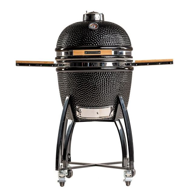 Hoovi Kamado Large on monipuolinen kamado-grilli, joka on suunniteltu kohottamaan ulkona ruoanlaittoa. Tyylikäs musta muotoilu, vaaleat puiset sivupöydät ja vankka musta teräsjalkarunko tekevät tästä kamadosta poikkeuksellisen suorituskyvyn ja tyylin, joka takaa upean grillauskokemuksen. Toimitukseen kuuluu monipuolinen grillausteline.
