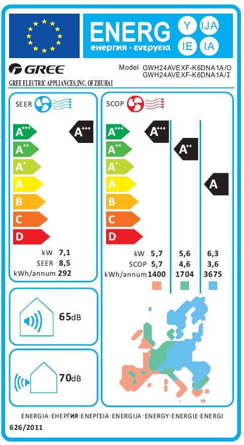 - Energiatehokkuusluokka jäähdytys-/lämmitystilassa: A+++ / A++
