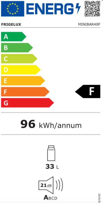 Frigelux MINIBAR40 kompakti 33 litran jääkaappi. Lämpötila-alue 5-17°C