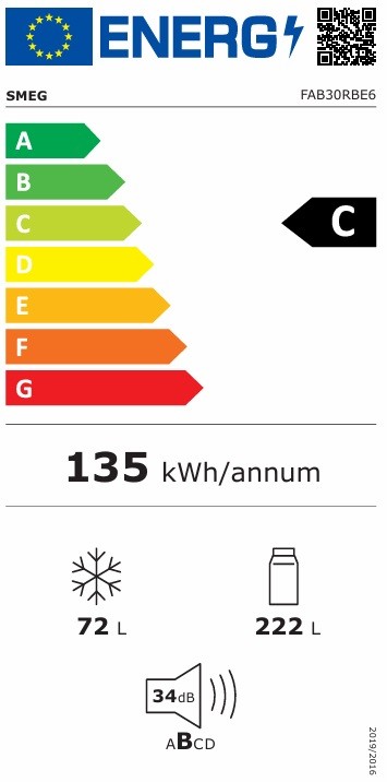 Jääkaappi on varustettu kahdella energiatehokkaalla LED-valolla, jotka tarjoavat kirkkaan valaistuksen ja helpottavat sisätilojen siistinäpitoa. Pakastimessa on neljän tähden lokero, jonka pakastuskapasiteetti on 4 kg päivässä. Ääni- ja visuaalinen hälytys ilmoittavat, jos ovi jää auki liian pitkäksi aikaa. Malli on suunniteltu sopimaan erilaisiin keittiötyyleihin, säilyttäen samalla Smegin tunnusomaisen laadun, kestävyyden ja ajattoman muotoilun.