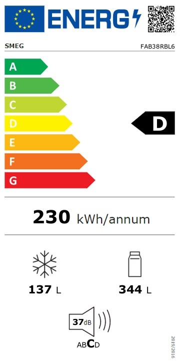 Smegin invertterikompressori ja ympäristöystävällinen R600a-kylmäaine takaavat hiljaisen ja energiatehokkaan toiminnan. Äänitaso on vain 37 dB(A), joten laite sopii täydellisesti avokeittiöihin. Energialuokka on D (uuden energiamerkinnän mukaisesti) ja melupäästöluokka C. Modernit komponentit takaavat pitkän käyttöiän ja korkean luotettavuuden. Liitäntäjohto on 1,8 metriä pitkä ja varustettu europistokkeella. Teho on 127 W, ja laite toimii ilmastoluokassa SN-T, mikä takaa optimaalisen suorituskyvyn 10–43 °C:n huonelämpötiloissa.