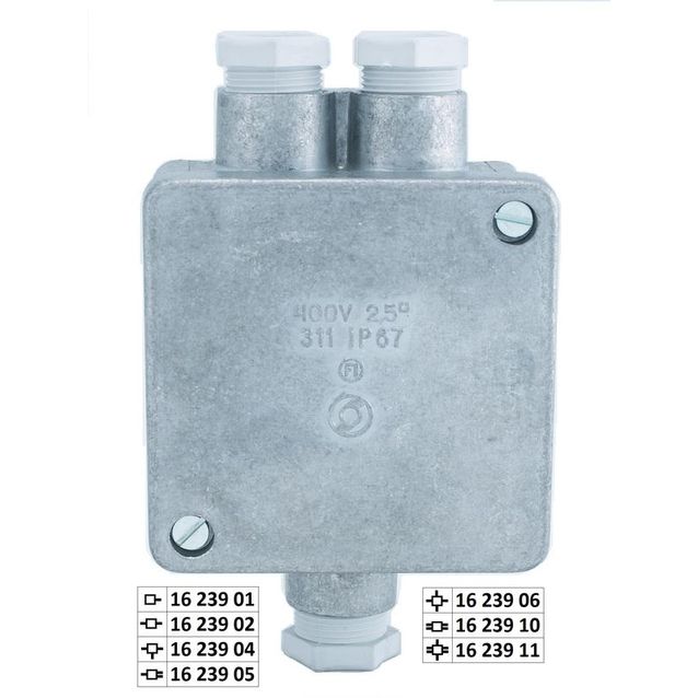 Jakorasia 400 V, IP 67. 5x2 5 mm2 vaippaliittimet + maadoitusliitin. PK16 läpiv. Muoviset holkkitiivisteet. 89x89mm. Rasiat voi myös tilata eri läpivientivaihtoehdoilla mainittujen lisäksi tai asiakas-kohtaisilla ratkaisuilla. (esim. väri, koneistus, varustus.)