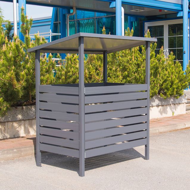 Tikli-roskakatos M on yhdelle 660 litran jäteastialle tai vaihtoehtoisesti kahdelle 240l tai 360l jäteastioille soveltuva ovellinen roskakatos. Alumiini on materiaalina kestävä, helppohoitoinen ja ekologinen. Tikli-katos on pitkäikäinen ratkaisu kodin tai taloyhtiön jätehuoltotarpeisiin ja tyylikkäät katokset lisäävät piha-alueen viihtyisyyttä. Katoksen moderni, ajaton design sopii tyyliltään monenlaisiin pihoihin. Elementtirakenteen ansiosta katoksen voi pystyttää paikan päällä. Väreinä valkoinenRR20 ja tumman harmaa RR23. Tiklin katostuotteet ovat 100 % kierrätettäviä. Tiklin katokset ovat helppohoitoisia, pelkkä pesu riittää.