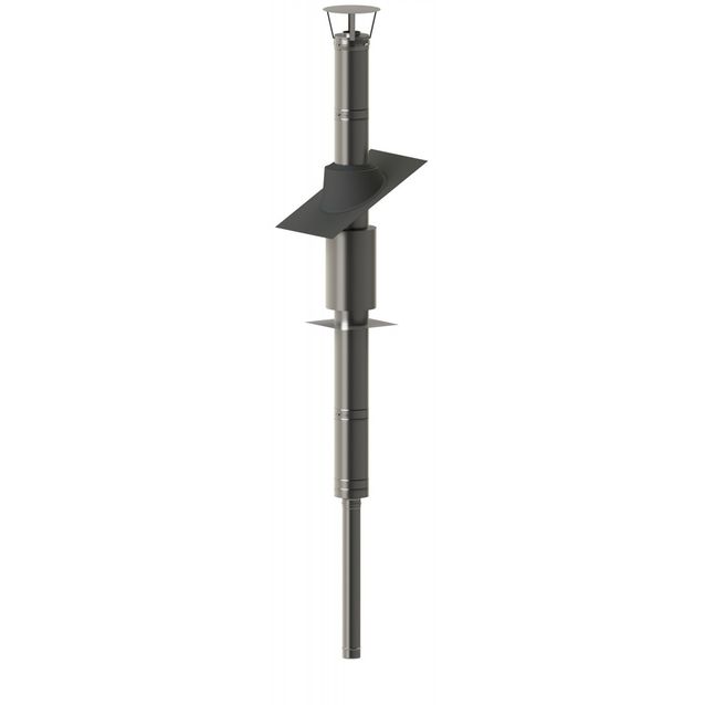 - Toimitussisältö: Eristämätön yhdysputki 1 m, jota voi lyhentää (sallittu minimipituus on 0,2 m), eristetty osuus (1,5 m) toimitetaan aina kahdessa osassa (1m ja 0,5m) jotka liitetään toisiinsa siderenkaan avulla, päätöskappale, aloituskappale ja siderengas, läpivientituki/sisäkaton peitelevy, joka käy 0° - 15° kattokaltevuuksille, käännettävä savupelti sisältyy toimitukseen (Vedettävä savupeltilaite tilattava erikseen), vesikaton läpivienti ja klemmaripanta, sadehattu (pujotetaan ylimmän elementin päälle ja kiristetään paikalleen), CE-tarrat (2 kpl), asennusohje, läpiviennin lisäeritys. Saatavana on myös erikseen testattu ja erittäin turvallinen välikaton Lisäeriste Plus, kun käytössä on paksu välipohjaeristekerros.