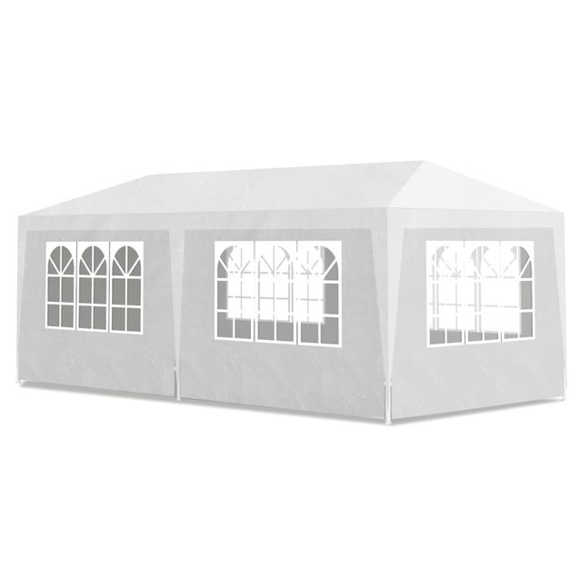 Juhlateltta on upea paikka perheen ja ystävien viihdyttämiseen ulkoilmajuhlissa ja illanvietoissa. Puutarhateltta on valmistettu UV-säteiltä suojaavasta ja vedenkestävästä polyeteenimateriaalista ja on siten erittäin käytännöllinen ulkokäyttöön. Runko on tehty ruosteenkestävästä teräksestä, mikä tekee teltasta vakaan ja kestävän. Juhlateltassa on sivupaneelit, joissa kaikissa on koristeelliset ikkunat, ja yksi vetoketjullinen ovipaneeli. Teltta on helppo koota. Suosittelemme käsittelemään katoksen kyllästesuihkeella, jos se altistuu koville vesisateille.