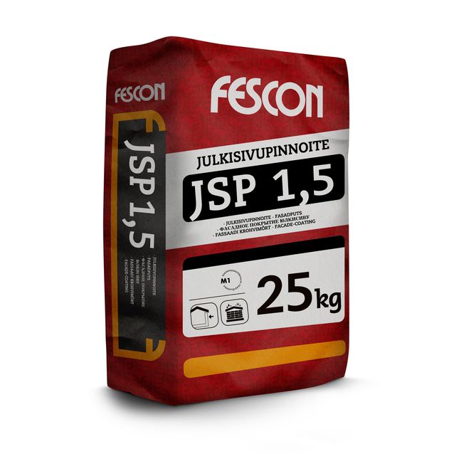 Fescon Julkisivupinnoite JSP on polymeerimodifioitu sementtiperustainen värillinen ohutrappauslaasti, jossa on säänkestävyyttä parantavia ja kapillaarista vedenimeytymistä pienentäviä lisäaineita. Soveltuu ruisku- ja käsikäyttöön.