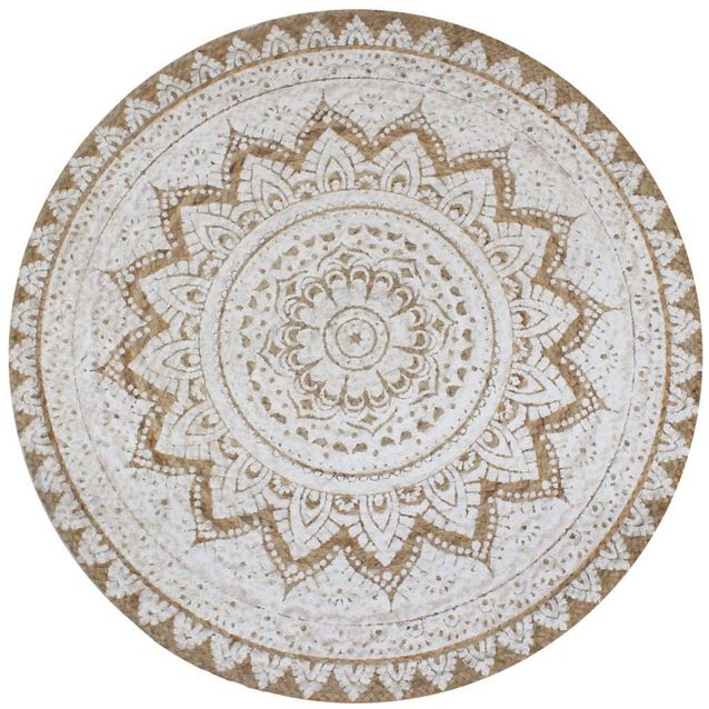 Luo sisätiloihisi luonnollista tunnelmaa punotulla juuttimatollamme. Pyöreä matto on punottu poikkeuksellisen taidokkaasti käsin taitavien käsityöläisten toimesta ja se sopii viehättävän pintarakenteensa ja kauniin Mandala-kuvionsa ansiosta erinomaisesti kotisi sisustukseen.
