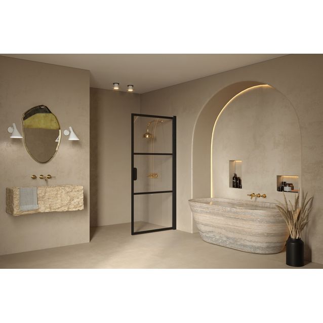 Mittojen mukaan valmistettava Hietakarin Bläk 735 Tokyo on teollisuushenkiseen tyyliin muotoiltu kääntyvä suihkuovi särmikkäillä kehyksillä. Kääntyvä suihkuseinä suojaa suihkun vieressä olevaa tilaa ja kalusteita vesiroiskeilta. Kun suihku ei ole käytössä, suihkuseinä voidaan kääntää suihkutilan seinää vasten. Suihkuseinä kääntyy molempiin suuntiin 90 astetta ja varustetaan säädettävällä keskityksellä. Keskitys pyrkii palauttamaan suihkuseinän takaisin auki ja kiinni -asentoihin. Tyylikkäät mustat kehykset ovat polttomaalattua alumiinia ja heloitukset polttomaalattua messinkiseosta. Lasi on 6 mm vahvuista karkaistua turvalasia. Suihkuseinän mekaanisilla osilla ja turvalasin karkaisulla on 10 vuoden takuu.