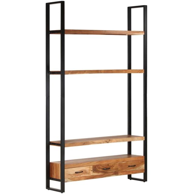 Tämä korkea kaappi on varustettu kolmella hyllyllä, jotka tarjoavat runsaasti säilytystilaa henkilökohtaisille esineillesi, kuten kirjoille, valokuvakehyksille, koristeille, ynnä muille. Hyllylle voidaan asettaa myös TV, joka tekee siitä ihanteellisen huonekalun olohuoneeseen. Kolme alaosassa olevaa vetolaatikkoa tarjoavat myös tilaa pikkuesineiden järjestyksessä ja käden ulottuvilla pitämiseen. Tämä kirjahylly on valmistettu täydestä akaasiapuusta, trooppisesta tiheäsyisestä lehtipuusta. Tämä kauniisti muotoiltu säilytyskaappi on vakaa, kestävä ja katseet kiinnittävä. Erinomainen käsityötaito ja kauniit puun kuviot tekevät jokaisesta huonekalusta hieman erilaisen kuin seuraavasta. Tämä hyllykkö on koristeellinen ja käytännöllinen lisä sisustukseesi!