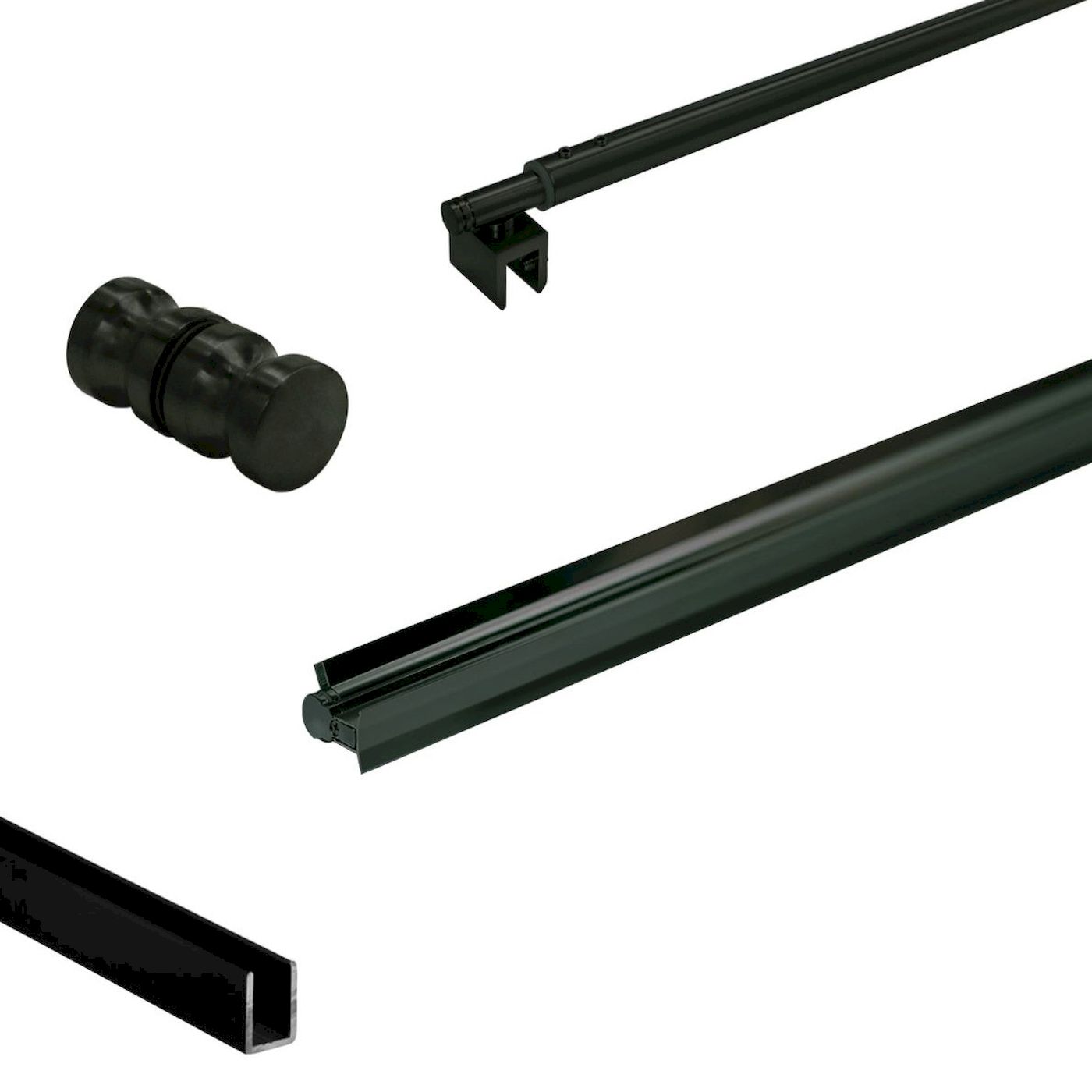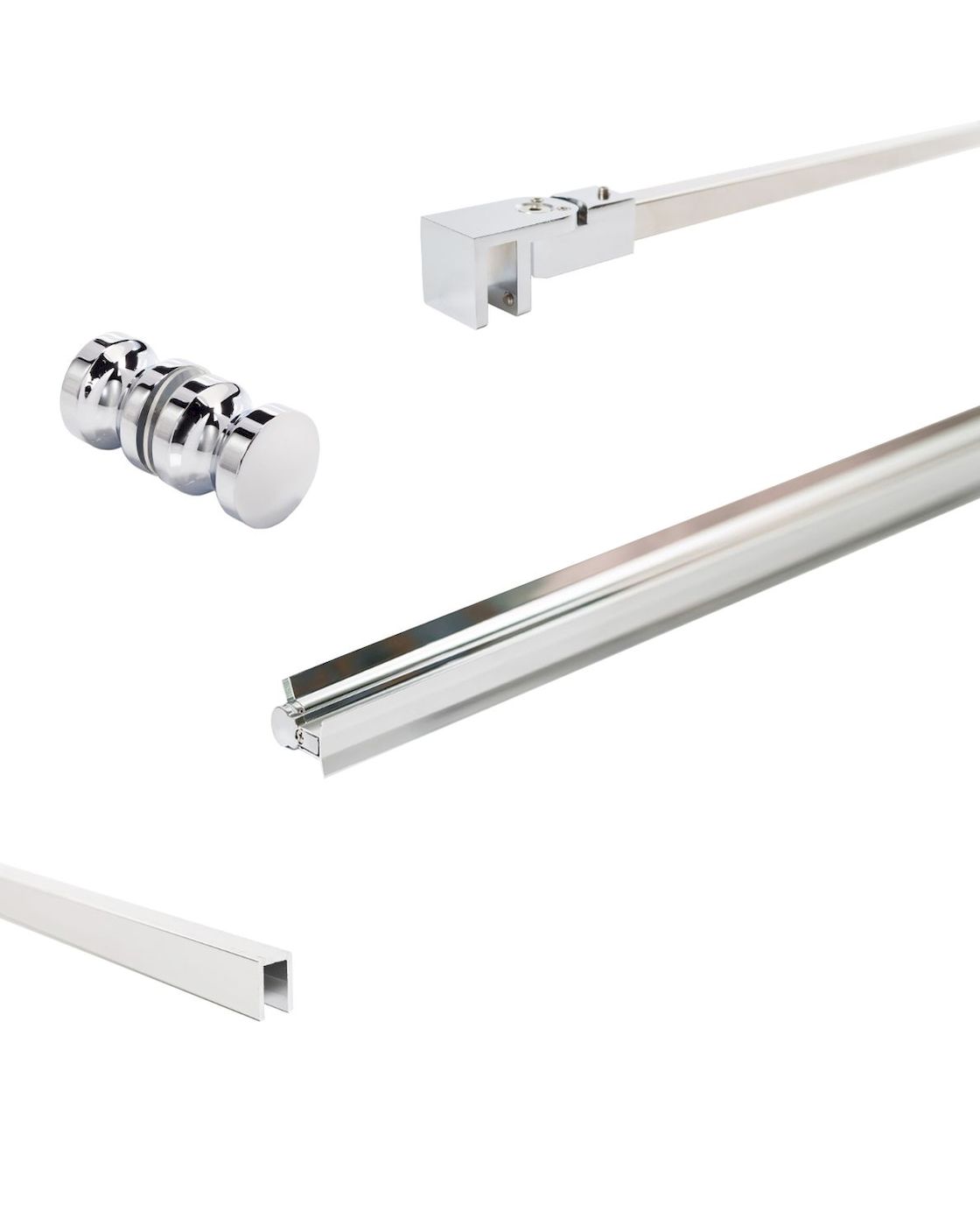 - Toimitussisältö: lasi, saranat, nuppi, teleskooppiputki, U-profiili(ala- ja sivukiinnitys), ruuvit, tiivisteet, kiinnitystulpat ja asennusohje