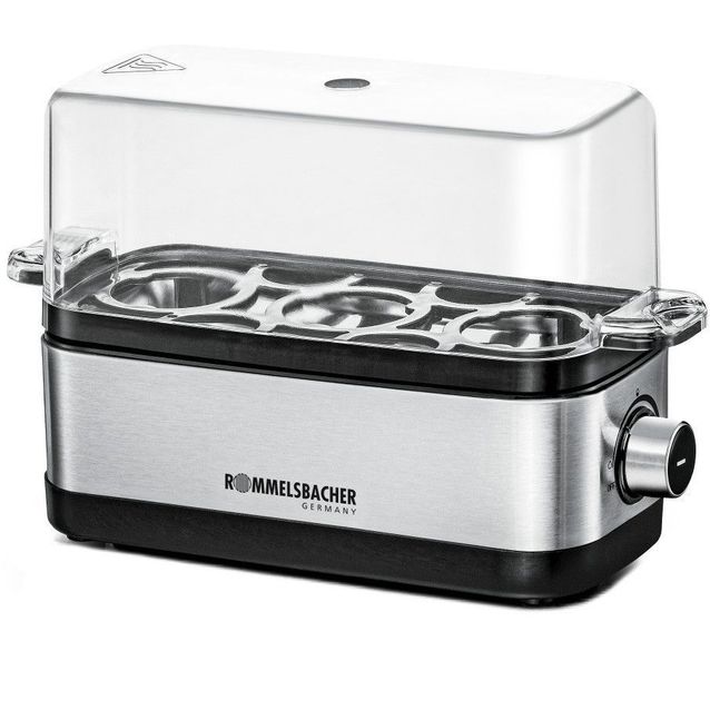 Rommelsbacher ER300-kananmunakeitimellä valmistat aina täydelliset kananmunat. Ajastimella varustettuun keittimeen mahtuu kerrallaan 1-3 kananmunaa. Nosta kananmunat merkkiäänen jälkeen keittimestä ja nauti lämpiminä tai jäähtyneinä.