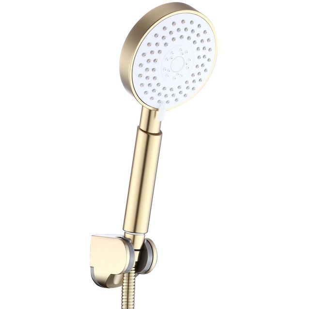 Minimalistinen ja kestävä Harma Gold collection-käsisuihkusetti. Toimitukseen kuuluu käsisuihku, suihkuletku ja seinäkiinnike.