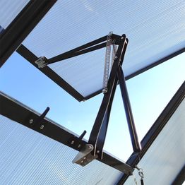 - Terässokkeli (tilattavissa erikseen): Valmissokkeli on helpoin ja nopein tapa tehdä perustus kasvihuoneelle. Sokkeli on musta ja kynnyksetön. Sisältää maa-ankkurit ja kaikki tarvittavat osat huoneen kiinnitystä varten.