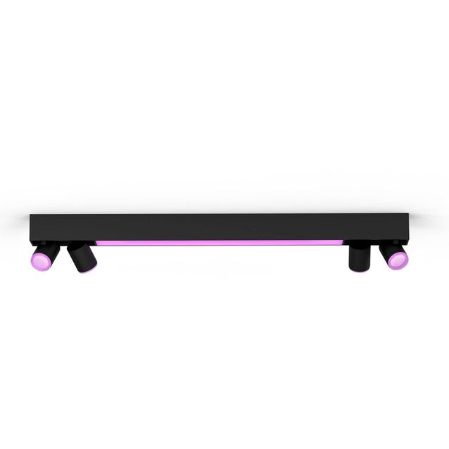 Yksi valaisin tarjoaa sekä käytännön valon että tunnelmavalaistuksen. Mustassa Centriksessä on kiinteä kattovalo ja neljä kohdevalaisinta, jotka voi suunnata yksilöllisesti. Voit valita valaisimen jokaisen lampun värin miljoonista vaihtoehdoista ja luoda ainutlaatuisen ilmeen.