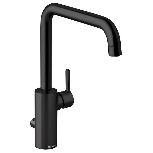 Mattamusta Damixa Silhouet on näyttävä keittiöhana, joka on varustettu pesukoneventtiilillä ja korkealla juoksuputkella. Laadukas Silhouet yksiotehana on tuo keittiöösi käytännöllisyyttä ja tuulahduksen modernia ilmettä.