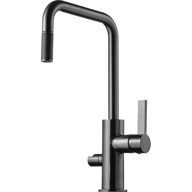 Kulmikkaasti kaartuva juoksuputki, ulosvedettävä suutin ja harjatun mustan kromin värinen pinta muodostavat keittiöhanan nimeltä Tapwell Arman ARM887. Tässä monipuolisessa hanassa on lisäksi astianpesukoneliitäntä, joten se käyttää kaikki jokapäiväiset tarpeet keittiössä. Ulosvedettävän juoksuputken ansiosta suurempienkin astioiden peseminen käy vaivatta ja suorasta kahvasta saa tukevan otteen liukkaammillakin sormilla.