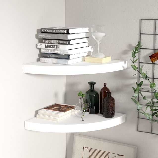 Tämä sarja koostuu kahdesta tyylikkäästä kulmahyllystä, joilla voit pitää näytillä lempikirjojasi, koriste-esineitä, valokuvia, palkintoja jne.