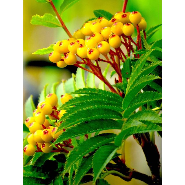 Keltamarjainen pylväspihlaja Autumn Spire on pihlajan tiiviskasvuinen, pilarimainen lajike. Sen oksat ovat lyhyet ja pystyt, ja lehdistö on kiiltävän vihreä. Pylväspihlajan kukat ovat valkoiset. Sen sitruunankeltaiset marjat koristavat puuta loppukesästä, ja se on syysväriltään hohtavan punainen.
