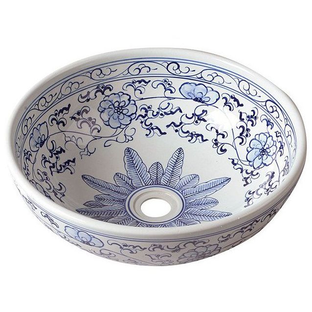 Keraaminen pesuallas Interia Priori, pöytätasolle, koristemaalattu, valkoinen/sininen, 420 X 420 X 150 mm