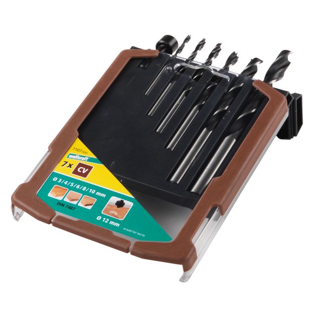 Wolfcraft laadukas kierukkapuuporasarja. Paketti sisältää kuusi erikokoista kierukkapuuporaa sekä yhden upotusporan. Tuotteet on pakattu kätevään muoviseen vetolaatikkoon.