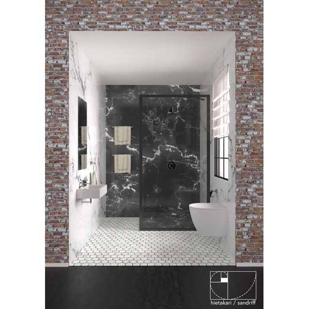 Hietakarin 897 mm leveä Bläk 731 New York on teollisuushenkiseen tyyliin muotoiltu kiinteä suihkuseinä särmikkäillä kehyksillä. Kiinteä suihkuseinä suojaa suihkun vieressä olevaa tilaa ja kalusteita vesiroiskeilta. Kiinteä suihkuseinä on tukeva, ja sillä voidaan rajata vettä tehokkaasti. Tyylikkäät mustat kehykset ovat polttomaalattua alumiinia ja heloitukset polttomaalattua messinkiseosta. Lasi on 6 mm vahvuista karkaistua turvalasia. Suihkuseinän mekaanisilla osilla ja turvalasin karkaisulla on 10 vuoden takuu.