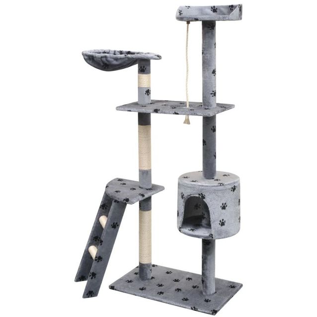 Kissan raapimispuu, sisal-pylväillä, 1 pesällä, 150cm, tassukuvio, harmaa