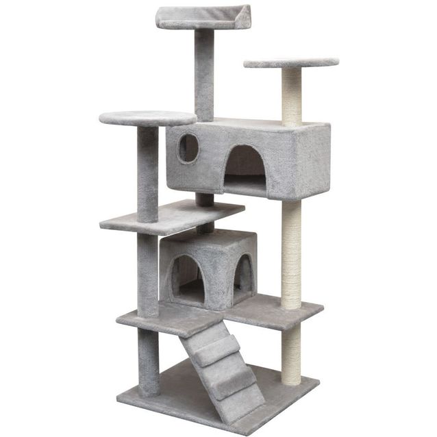 Kissaystäväsi voivat teroittaa kynsiään sisal-köydellä päällystetyissä raapimistolpissa, jotka tarjoavat terveellisen vaihtoehdon heidän raapimisvaistojensa toteuttamiseen. He voivat myös nauttia toistensa takaa-ajosta hyppien ylös ja alas tässä hauskassa leikkitelineessä. Kun pienet ystäväsi ovat saaneet tarpeekseen hauskanpidosta, voivat he nauttia ylemmillä tasoilla rentoutumisesta, mistä heillä on myös hyvät näkymät ympärilleen. He voivat myös piiloutua päiväunille yhteen viihtyisistä kopeista.