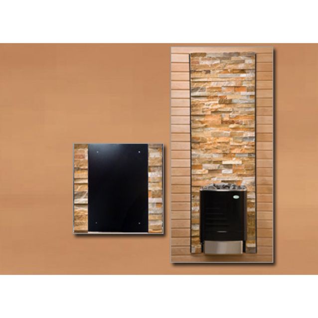Luonnonkivi-elementtien lisäksi pakkaus sisältää korotuslevyn, jolla kiuasta voidaan tuoda ulos taustaseinästä riittävän turvaetäisyyden varmistamiseksi. Kaikki osat ovat ruuvikiinnitteisiä, ruuvit sisältyvät pakkaukseen. Kiinnitys voidaan tehdä suoraan esim. olemassa olevan paneeliseinän päälle, ilman purku- tai muuraustöitä. Tämä elementti on tarkoitettu vain senään kiinnitettävälle kiukaalle.