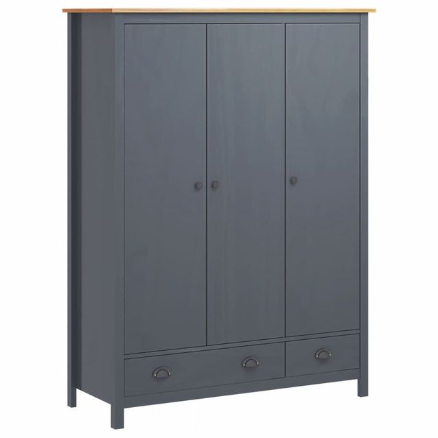 Kolmiovinen vaatekaappi hill range harmaa 127x50x170cm mänty