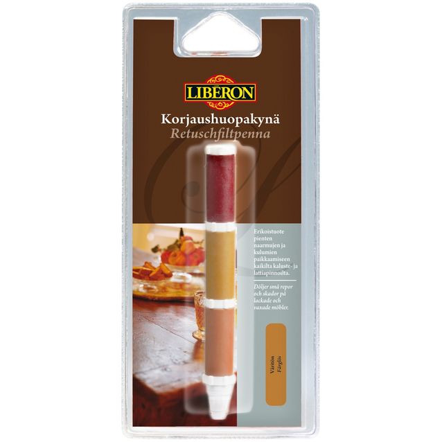 Korjaushuopakynä soveltuu naarmujen peittämiseen huonekaluissa, listoissa, kehyksissä ja lattiapinnoilla. Soveltuu lakatulle, vahatulle tai öljytylle puulle sekä laminaatti että melamiinipintojen korjauksiin.