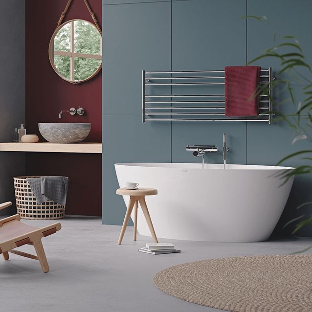 Nordhemin Ekerö on ovaalinmuotoinen, vapaasti seisova kylpyamme. Minimalistisen pehmeä muotoilu ja valmistusmateriaalina käytetty marmori tekevät Ekerö-ammeesta kylpyhuoneen katseenvangitsijan. Tietenkin ammeessa on myös ihana ottaa nautinnollinen kylpyhetki. Maltillisen kokoinen Ekerö-kylpyamme mahtuu myös pienempiin kylpyhuoneisiin.