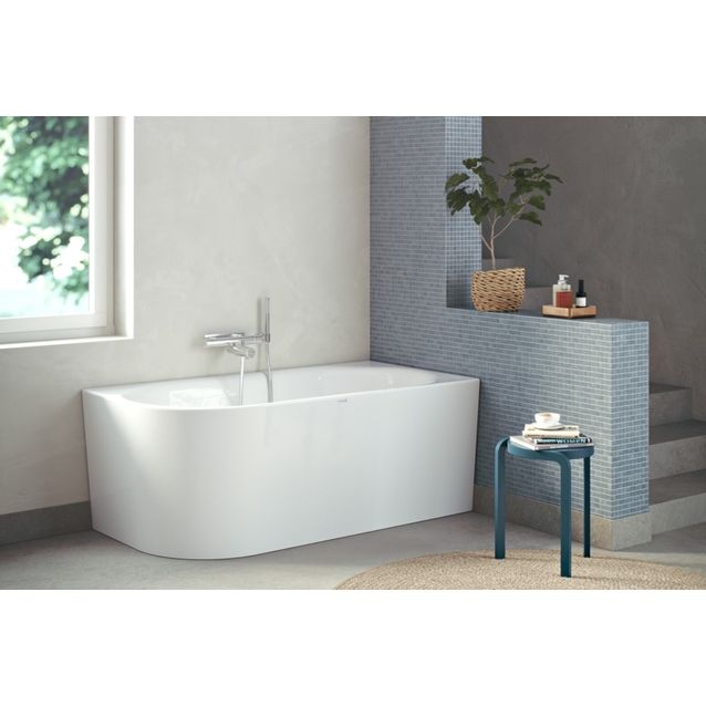 155 cm leveä kylpyamme Nordhem Hovås II oikea on näppärä kylpyamme, joka mahtuu myös pienempään kylpyhuoneeseen. Kompaktista koostaan huolimatta ammeessa on silti runsaasti tilaa kylpemiselle ja sen molemmat sisäpäädyt on kaarrettu, joten voit istua ammeessa kummin päin tahansa. Amme on helppoa asentaa kylpyhuoneen kulmaan sen suorien seinien ansiosta. Lucite®-akryylista valmistettu kylpyamme tuntuu pehmeältä ja lämpimältä ihoa vasten, ja koska se on valettu yhdessä osassa, siinä ei ole ikäviä saumoja.