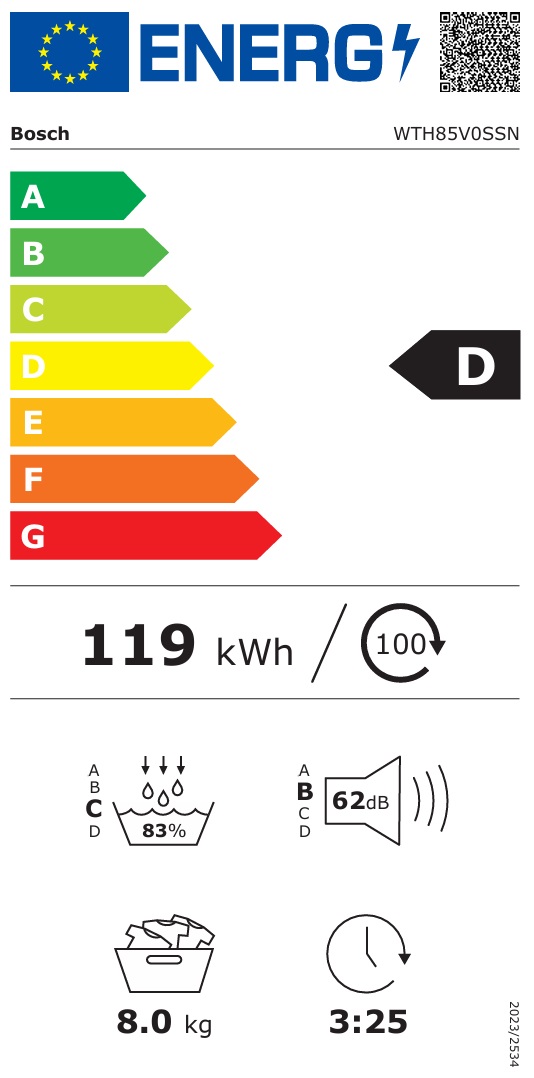 Bosch Series 4 WTH85V0SSN on 8 kg:n tehoinen lämpöpumppukuivain, joka tarjoaa energiatehokkaan ja hellävaraisen kuivauksen. AutoDry-anturi mittaa kosteustason koko kuivausprosessin ajan ja säätää lämpötilaa automaattisesti ylikuumenemisen ja kulumisen estämiseksi.