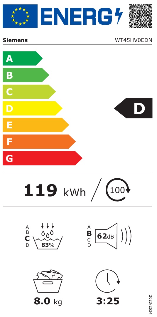 Siemens WT45HV0EDN iQ300 lämpöpumppurumpurumpu. Kosketus LED-näyttö on helppo käyttää ja näyttää selkeästi kaikki olennaiset tiedot.