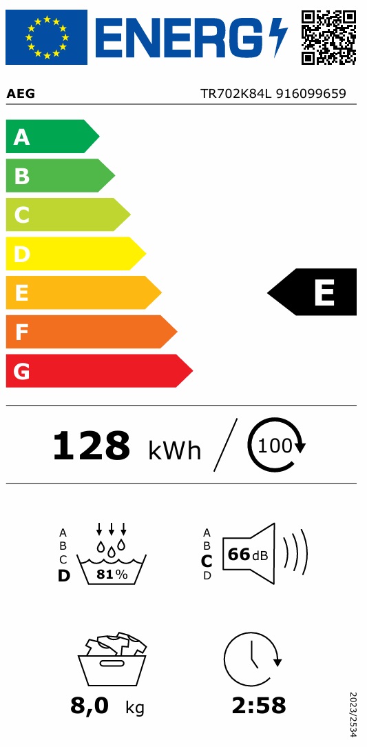 AEG TR702K84L lämpöpumppukuivausrumpu