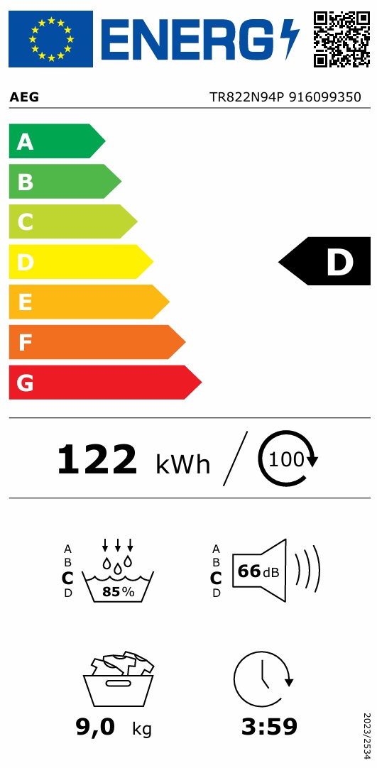 AEG TR822N94P lämpöpumppukuivausrumpu